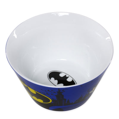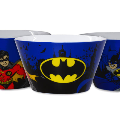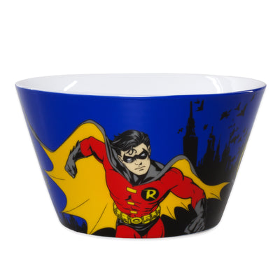 Damit auch Du allen Widrigkeiten, die Dir im Alltag begegnen können, vor Kraft strotzend entgegentreten kannst, solltest auch Du am Morgen ein solides Mahl zu Dir nehmen. Und was bietet sich für einen Comicfan mehr an als eine DC-Comics-Schüssel? In dieser rundum bedruckten Keramikschüssel schmeckt selbst das trockenste Hafermüsli und Du kannst beim essen Batman und Robin dabei zusehen, wie sie über die Schüssel turnen. Und denk dran: Wenn Du nicht alles aufisst, wird es morgen Regen geben. Also schön weiterfuttern, bis Du das Batman-Logo auf dem Boden der Schüssel siehst!