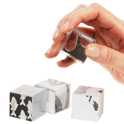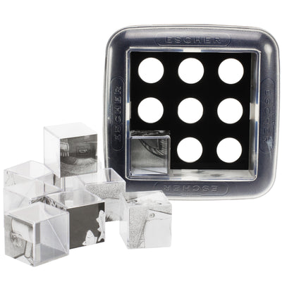 Durch die richtige Anordnung der Würfel und somit der darin enthaltenen Spiegel, kannst Du insgesamt fünf wichtige Werke von M.C. Escher nachpuzzeln. Bei den Bildern handelt es sich um Werke des Künstlers, die mit Sinnestäuschungen, Verzerrungen und Spiegelungen zu tun haben - jeden Geek und Nerd also begeistern werden!