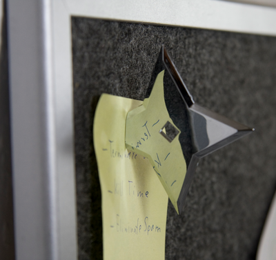 Für besonders wichtige Notizen oder Konzertkarten sind herkömmliche Reißzwecken einfach zu profan. Ein Ninja-Stern dagegen ist eine würdige Befestigung und gleichzeitig eine wirkungsvolle Abschreckung gegen eventuelle Langfinger