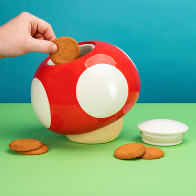 Das Geheimnis der Pilze wird die "Nintendo Super Mario Mushroom"-Keksdose lüften! Diese Keramikdose ist einem der Super Mushrooms aus der Spielereihe über den Schnurrbartträger nachempfunden und wird Dich auf ähnliche Art und Weise mit Energie versorgen. Dafür musst Du aber zuerst den Deckel öffnen, der sich unter einem der Flecken befindet und die Dose mit Keksen oder anderen Süßigkeiten befüllen. Bei Deinem nächsten Durchhänger kannst Du dann zum Pilz greifen und Deine Energiespeicher im Nu wieder auffüllen. Genauso macht es Mario schließlich auch! ;)