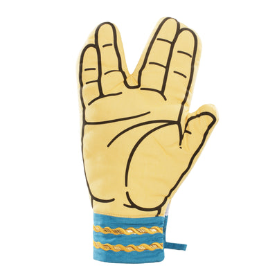 Neben seiner unterkühlt logischen, aber doch irgendwie herzlichen Art ist wohl vor allem der Vulkanier-Gruß zu einem Symbol für Star Trek geworden. Und mit dem Star Trek Spock Ofenhandschuh kannst Du nicht nur Deine Verbundenheit zu Deinen Lieblings-Franchise zeigen, sondern auch Deinem Kuchen, Auflauf, Brot oder Deinen Brötchen einen freundlichen intergalaktischen Gruß zukommen lassen.