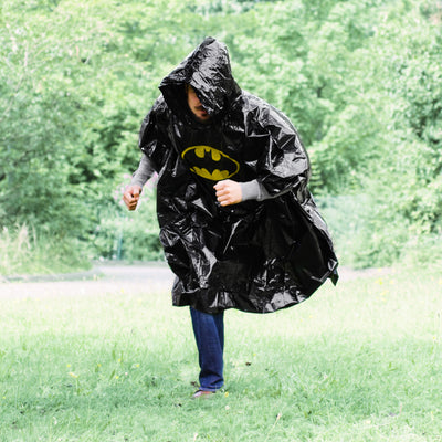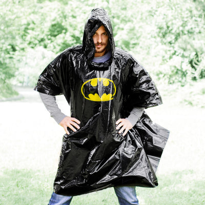 Wenn Du schon immer davon geträumt hast, Dich wie einer der bekanntesten Helden aus DCs Comicuniversum einzukleiden, ist dies Deine Chance! Die Kunststoffponchos in Einheitsgröße eignen sich nicht nur zur Verbrecherjagd, auch im Alltag machst Du in ihnen eine gute Figur. Insbesondere auf Musikfestivals, die erfahrungsgemäß immer in Starkregen und Land unter enden, wirst Du mit Sicherheit einige neidische Blicke auf Dich ziehen. Nur das Gleiten wie Batman solltest Du besser nicht ausprobieren.