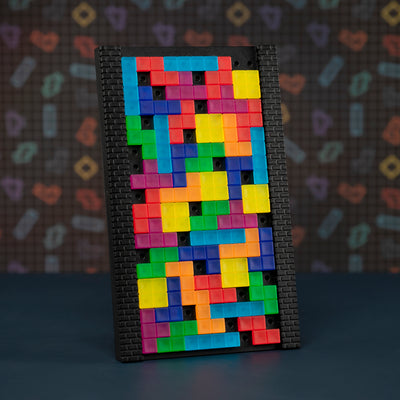 Mit der „Tetris Tetrimino“-Lampe kannst Du jede Menge Retro-Feeling in Deine Wohnung bringen und gleichzeitig auch noch Tetris spielen! Denn auf der Vorderseite dieser Lampe kannst Du die 51 enthaltenen Bausteine (auch Tetriminos genannt) platzieren und sie anschließend aufleuchten lassen. Die Stromversorgung erfolgt über das enthaltene USB-Kabel.