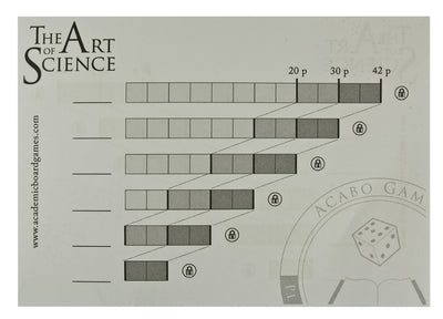 Der Clou an diesem Spiel: Du kannst Dir selbst aussuchen, in welcher Reihenfolge die Kategorien gewertet werden. Die Kategorie, die Dir am besten liegt, steht dann ganz oben auf der Punktekarte. Damit können Biologen und Mathematiker gegeneinander antreten und haben (fast) gleiche Chancen. Außerdem kannst Du durch unterschiedliche Punkteziele (20, 30, 42) die Spiellänge beeinflussen.