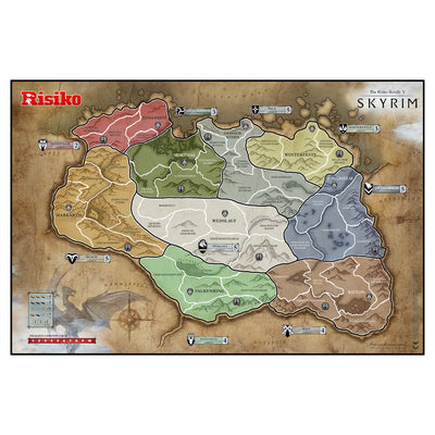 Im „The Elder Scrolls V: Skyrim”-Risiko führen 2-5 Spieler ab 13 Jahren exakt diesen Bürgerkrieg weiter und entscheiden so das Schicksal der gesamten Provinz. Kenner des Spiels werden das aufwendig gestaltete Spielbrett mit Orten wie Falkenring, Morthal oder Markarth direkt wiedererkennen und sich zusammen mit den exklusiven Spielfiguren direkt ins Schlachtengetümmel stürzen.