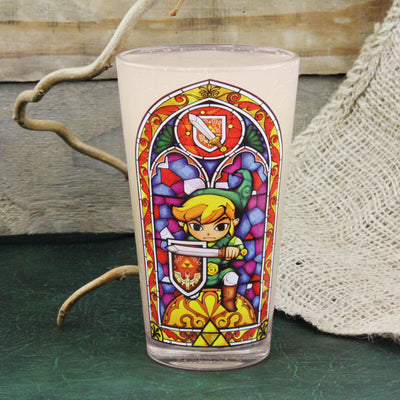 Nachdem der selbsternannte Held das letzte Mal unser Lagerhaus verwüstet hatte, haben wir ihn uns beim Schlafittchen gepackt und ihm gehörig ins Gewissen geredet, bis er uns versprochen hat, in Zukunft keine Haushaltsgegenstände mehr zu zerstören. Dein nagelneues The Legend of Zelda Link Glas ist also auf absehbare Zeit sicher und Du kannst es in aller Ruhe bewundern. Auf beiden Seiten des Glases findest Du zwei unterschiedliche Motive, die Link mit Pfeil und Bogen bzw. mit Schwert und Schild zeigen. Optisch erinnern die Motive an Buntglasfenster, wie man sie etwa von Kirchenfenstern oder Prunkbauten kennt. Es ist der Sicherheit Deines Glases zweifelsfrei nicht abträglich, dass ausgerechnet Link das Glas ziert. Denn all seine Heldentaten sind dem Recken sicherlich dermaßen zu Kopf gestiegen, dass er niemals sein eigenes Abbild zerstören würde... ;)