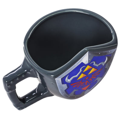Falls Du schon immer ein Stück Videospielgeschichte in der Hand halten wolltest, eine lebensgroße Replik aus Metall aber aus welchen Gründen auch immer unpraktisch findest, bietet Dir der Zelda Link Schild Becher eine tragbare und nützliche Alternative. In dem Becher finden etwa 0,4 Liter einer beliebigen Flüssigkeit Platz und durch den Henkel, der optisch an genietetes Metall erinnert, liegt sie sicher in der Hand. Auf der Vorderseite findest Du das oben erwähnte Wappen, die Rückseite ziert das "The Legend of Zelda"-Logo. Somit sind Deine Getränke bestens geschützt und vielleicht hilft der Schild auch gegen nervige Kollegen oder Leute, die immer noch nicht kapiert haben, dass Zelda die Prinzessin ist...
