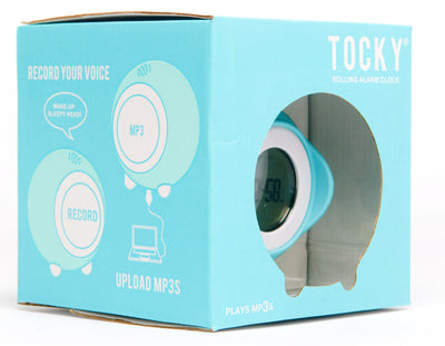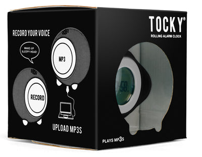 Im Gegensatz zu Clocky braucht Tocky dafür aber keine Räder. Er hat stattdessen ein Gewicht im Inneren, das von einem Motor bewegt wird und den kugelförmigen Wecker zum Rollen bringt. Durch einige Erhebungen an der Außenseite wird die Bewegung abgelenkt, sodass er nicht gerade rollt sondern sehr dynamisch - er soll ja nicht zu leicht zu fangen sein!