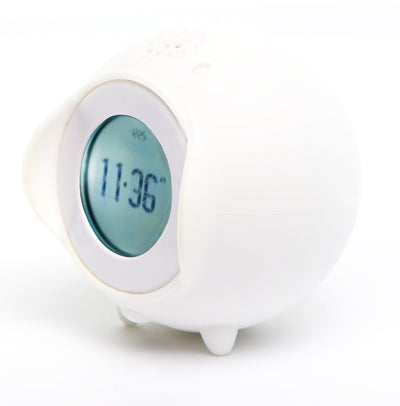 Neben seiner Neigung, sich vom Bett zu entfernen, bietet Tocky noch weitere tolle Funktionen. Besonders schön ist, dass neben dem voreingestellten Weckton auch MP3s aufgespielt und Sprachnachrichten aufgenommen werden können. Auf dem Speicher ist Platz für 10 Sounddateien von 6 Stunden Gesamtlänge. Für das Hochladen der MP3s hat Tocky einen Mini-USB-Anschluss. Ein Mini-USB auf USB-Kabel liegt bei.