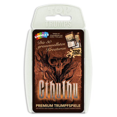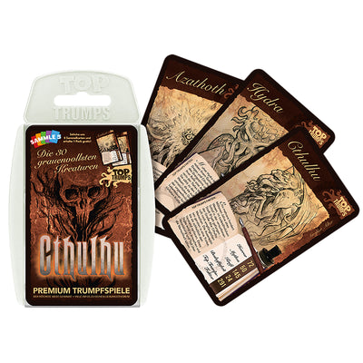 Denn allen angehenden und Möchtegern-Kultisten von Cthulhu, Azathoth, Shub-Niggurath oder Nyarlathotep empfehlen wir das Top Trumps Cthulhu Supertrumpf-Kartenspiel, das nicht nur für aufgestellte Nackenhaare sorgt, sondern auch Dein Wissen über die großen und kleineren Alten verbessern kann.