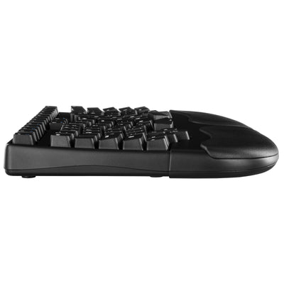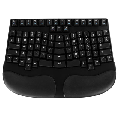 Auf dieser Tastatur befinden sich auf 60% weniger Platz genauso viele Tasten wie auf einer herkömmlichen Tastatur - und das ohne die Tasten großartig zu schrumpfen. Die engere Anordnung sorgt dafür, dass Du eine bessere Haltung einnimmst und Deine Arme näher beieinander liegen können. Der Weg, den Du zurücklegen musst, um zur Maus zu greifen, ist dadurch ebenfalls verkürzt. Die gepolsterte Ballenauflage bietet in Schreibpausen zusätzlichen Komfort.