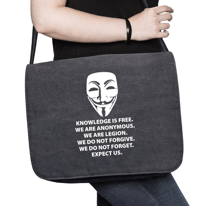 Neben der typischen Maske, befindet sich auf der Vorderseite des Shirts auch der bekannte Leitspruch von [i]Anonymous[/i]. Auf der Rückseite symbolisiert die 'kopflose Person im Anzug' den führerlosen Charakter der Bewegung.