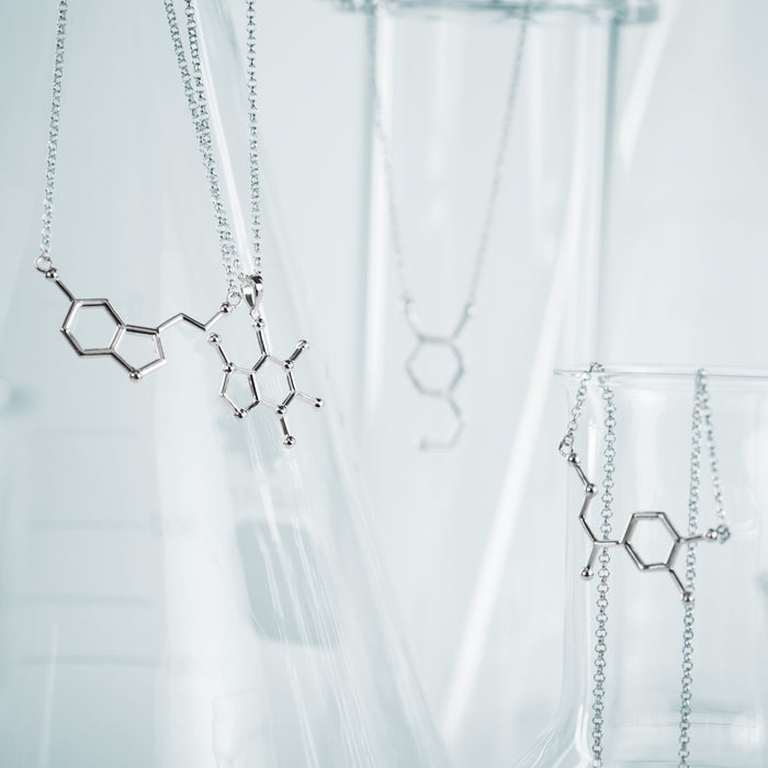 Nun behauptet manch einer, nicht Kaffee, sondern Adrenalin bringt uns zu Höchstleistungen. Das muss erst noch bewiesen werden, trotzdem gibt es den Anhänger auch als Adrenalin-Molekül. Adrenalin lässt bekanntermaßen das Herz schneller schlagen, steigert die Durchblutung und macht uns blitzschnell.
