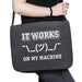 Falls Du des Öfteren zu hören bekommst, dass andere Menschen mit Deinen Programmen nicht klarkommen oder sie Dir einfach egal sind, kannst Du Deine Meinung mit dem "It works on my machine"-Shirt zum Ausdruck bringen. Manchmal muss man die Leute auch daran erinnern, den Fehler erstmal bei sich selbst zu suchen, bevor man andere Menschen damit nervt.