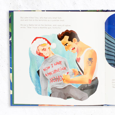 Because the 'Die Hard' Christmas Book with a plush figure transforms the classic action movie set in Nakatomi Plaza into a heartwarming picture book with English rhymes that (somewhat) childishly recounts the adventures of John McClane. Thanks to the cute drawing style, even the main villain Hans Gruber looks almost (!) friendly. As a little extra, this special edition also includes a John McClane plush figure that you can attach to your window or directly to your car's windshield with a suction cup. This way, you can stay in the Christmas spirit all year round! :)