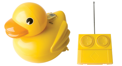 The duck is equipped with two propellers, so it can be controlled straight, to the right, or to the left. The duck itself is completely waterproof, but the remote control is only splash-proof.