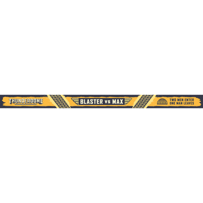 • Post-apocalyptic festival wristband made of fabric; Shows information about the fight between Max and Blaster in the Thunderdome; Can be adjusted in size via a metal ring; Proves that you were really (!) there ;)
