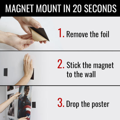 • You're probably wondering: What is a metal poster? And how should I mount it on the wall? Fortunately, both questions can be answered quickly and easily: a metal poster is a high-quality art print on a metal plate. So you can think of it like a paper poster, only with better print quality and without annoying creases and dog-ears! And mounting is child's play too: simply stick the magnetic panel supplied to the wall like a sticker and attach your poster. Gone are the days when you had to decorate your walls with nails, thumbtacks or drill holes.