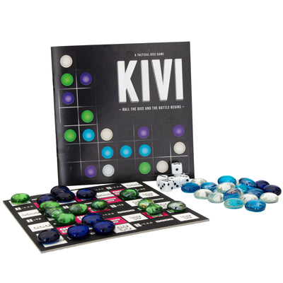 Das Kivi Würfelspiel ist ein kurzweiliges, lustiges Spiel, dessen Regeln schnell erklärt sind. Jeder Spieler hat 10 Spielsteine, mit denen er möglichst lange Reihen legen muss. Wer am Ende der 10 Runden die meisten Punkte hat, gewinnt. Ganz so einfach ist es aber doch nicht, denn wohin du deinen Kivi, also deinen Stein, setzten darfst, entscheiden die Würfel. Und natürlich können sich alle Mitspieler gegenseitig blockieren, um zu verhindern, dass jemand anderes als man selbst gewinnt.