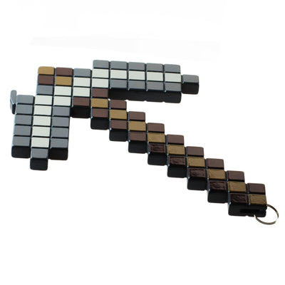 The pickaxe is relatively large (12.5 cm long), so you can really grip the handle and diligently pry off bottle caps. Otherwise, it just looks good, nicely pixelated. With the ring on the handle, the tool can theoretically even be attached to a keychain, although it would be a very substantial keychain (probably not a problem for pockets already accustomed to the bulge from a collection of keys, pocket knives, various tools, and USB sticks). Otherwise, the pickaxe can simply be decoratively hung on the wall with the ring.