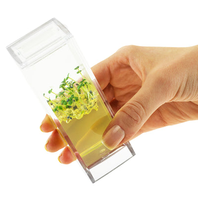 The Plantarium Garden Lab allows seeds to sprout without the need for regular watering. Ideal if normal houseplants don't have a long life with you. ;) Once the seeds are sown, you can relax and just watch them grow. Thanks to the transparent plant containers and the colorful nutrient gel, it looks simply fascinating and has nothing to do with old pots and crumbling potting soil.