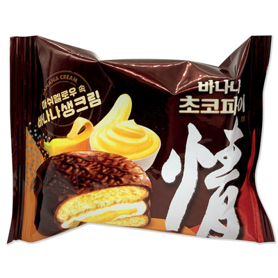 • Korean cakes with marshmallow filling, banana flavor, and chocolate glaze