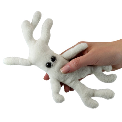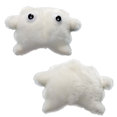 For everyone who has long forgotten biology lessons: the White Blood Cells, also called Leukocytes, preferably devour insidious intruders like bacteria and viruses. You can see a bit of their big appetite in the plush version with the huge eyes...