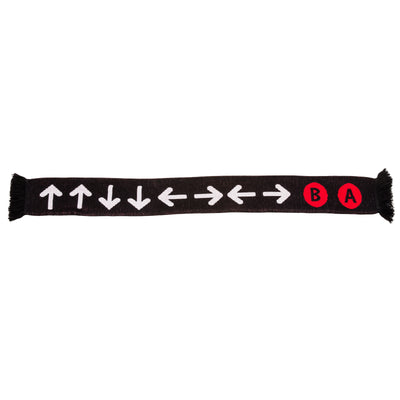 The Scarf with Konami Code Pattern can do exactly that! The wonderfully fluffy scarf is adorned on both sides with the legendary code "Up, Up, Down, Down, Left, Right, Left, Right, B, A". Connoisseurs of classic video games will immediately recognize it as the most famous cheat code in the world, which can be used in Konami games to activate gameplay advantages*.