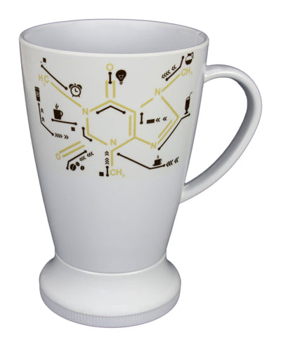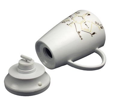 With the Self-stirring Mug, such situations are a thing of the past, because here you just press a button after filling and, as if by magic, milk and coffee blend into a harmonious unit. Mhmm... The printed caffeine molecule leaves no doubt about your hot liquid favorite! But other drinks like cocoa, KiBa, or vodka-O also feel right at home in the self-stirring mug ;)