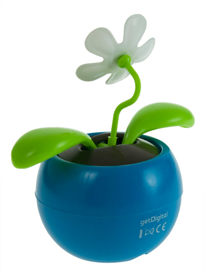 The cute solar flower won't hold a grudge against you for lack of care. It needs neither water nor soil and never lets its leaves droop. It actually doesn't need light either, but it thanks you by gently swaying its blossom and leaves. This happens via a small solar cell that converts sunlight or strong artificial light into movement through a mechanism inside the pot.