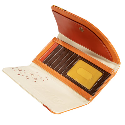 This Star Trek Uhura Wallet in retro look is inspired by Nyota Uhura and her early days in Star Trek, as the color scheme and design strongly remind of the early '70s. Besides Uhura's image on the front of the wallet, there are also small details, like the Star Trek logo or small stars, that reference the sci-fi series. The wallet has numerous compartments for all kinds of cards, bills, and coins.
