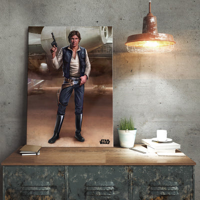At last you can hang your favorite character from Star Wars: Episode IV on your own four walls without worrying about useless pets, curious visitors or Imperial stormtroopers damaging your artwork. Through the "Star Wars: Episode IV" metal poster holds up with Han Solo one of the best movie series of all time enters your home.