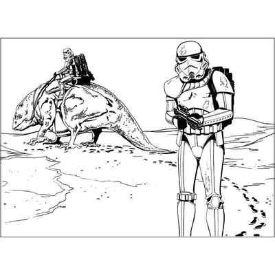 In fact, all the pictures in the Star Wars "Galaxy of Colouring" coloring book are in black and white. Strange. Maybe the Empire ran out of ink? Whatever the case: It's up to you to bring the characters and scenes from Star Wars that await you on the 112 pages back to life with colored pencils, markers, or a brush. How else are you supposed to tell the Jedi and Sith apart from a distance?