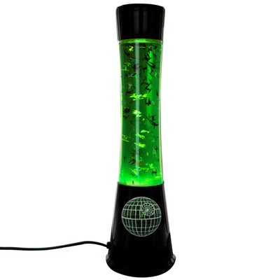 Although it would be a little too dangerous to send fully functional war machines, you can use the Star Wars Rogue One Space Battle Lamp you can bring the thrilling action from the big screen directly into your own four walls. Similar to a lava lamp, six different fighter planes rise and fall in the glass body and fight for supremacy. On the Rebel side, the iconic X-Wing and Y-Wing are joined by the newcomer U-Wing. The Empire sends TIE Striker, TIE Fighter and the personal shuttle of the villain Krennic into the race. In addition to all the action that takes place inside the glowing green lamp, the case also boasts details that will make every fan's heart beat faster: One side of the base features an image of the Death Star, while the other side is adorned with the emblem of the Death Troopers, the special forces of the Death Star.