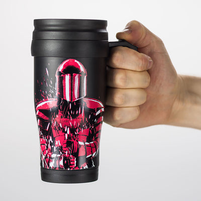 With the action-packed depiction of a Praetorian with a Mandalorian helmet on one side and the First Order insignia on the other, you can definitely show which side of the Force you stand on. Thanks to the sturdy handle and thermal lid with spill protection, not a drop of tea or coffee will go to waste even in heated situations or when you suddenly have to salute Snoke, Kylo Ren, or Armitage Hux.