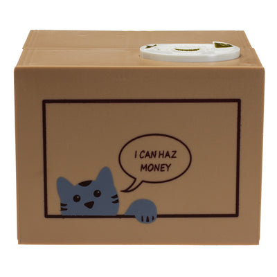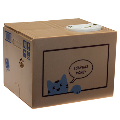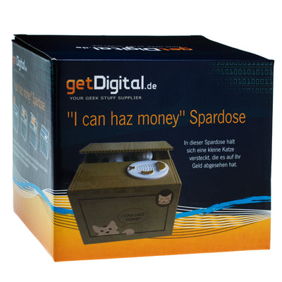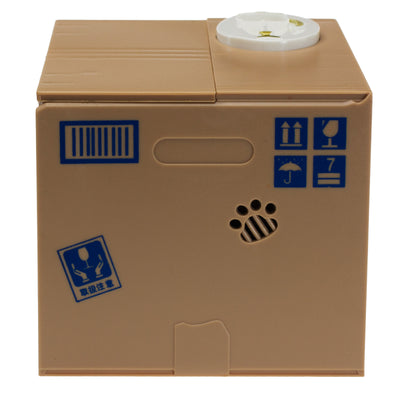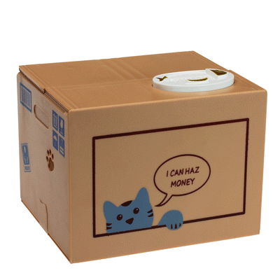 Bien sûr, notre petit chat a choisi une boîte en carton pour y vivre, mais cette boîte est en fait en plastique. Ton argent sera d'autant plus en sécurité à l'intérieur ;)