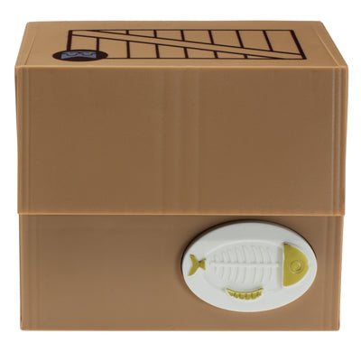 • Dans cette tirelire se trouve un chat qui surveille tes pièces;- ; Place une pièce sur l'assiette à poisson et le chat la récupère dans sa boîte.