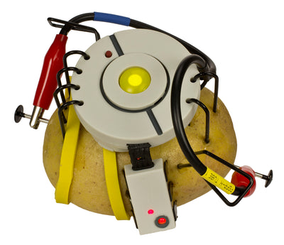 Si tu as manqué les expositions des enfants à la foire scientifique des Apperture Science Labs, nous avons quelque chose pour toi ici. Tu peux presque imiter le projet de Chell, sauf que ta pomme de terre ne génère pas vraiment d'électricité, mais devient un PotatOS (grâce à des piles cachées). Ton propre PotatOS a l'air d'être alimenté par la pomme de terre, mais pour réaliser les effets lumineux et sonores, il a besoin d'un peu plus de puissance. Mais à la fin, tu te sentiras comme au bon vieux temps : GLaDOS t'insultera à nouveau et tu pourras la porter autour de toi ;)