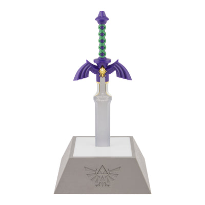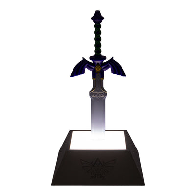 Pour que tu sois parfaitement préparé aux visites spontanées de Ganon et que tu puisses les reconnaître de loin, il existe le Lumière de l'épée de maître de The Legend of Zelda. Cette réplique de l'épée légendaire est éclairée par une lampe dans le socle, que tu peux allumer et éteindre en appuyant sur un bouton caché derrière le blason d'Hyrule. L'alimentation se fait via le câble USB inclus. Nous en sommes sûrs : la simple vue de l'épée suffira à dissuader Ganondorf !