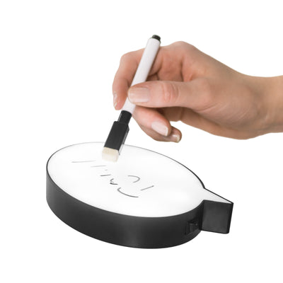 Ben diverso è il caso del Lampada magnetica a bolle d'aria per l'etichettatura! Puoi semplicemente attaccare questa bolla vocale al frigorifero o a un'altra superficie magnetica, scriverci sopra un messaggio con un pennarello da lavagna e inviare un messaggio ai tuoi coinquilini. E la cosa più bella? Grazie alla funzione luce, la bolla vocale può attirare l'attenzione anche al buio!