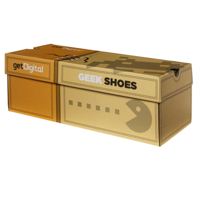 Se ti piace usare le scatole da scarpe per riporre i cavi aggrovigliati o magari vuoi regalare un paio di Geek Shoes, le scarpe vengono fornite in una bellissima scatola con un design coordinato.