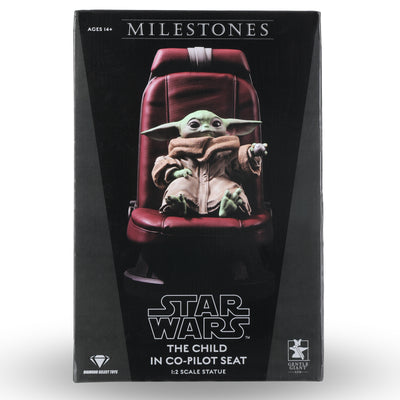 Descrizione Star Wars The Mandalorian Grogu sul sedile del pilota, figura da collezione in scala 1:2