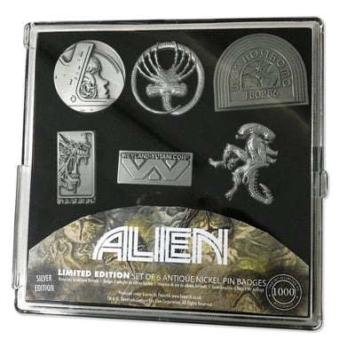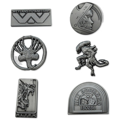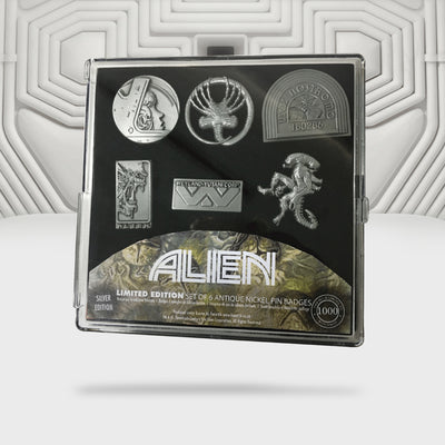 Das Set aus sechs Nickel-Ansteckern, von dem es weltweit nur 1000 Stück gibt, ist den wichtigsten Symbolen und Charakteren aus „Alien“ bis ins Detail nachempfunden. Da dürfen die Logos der Weyland-Yutani Corporation und dem von ihnen ins All geschickte Raumschiff USCSS Nostromo natürlich nicht fehlen, und auch das berühmte Seitenprofil der Überlebenden Ellen Ripley in ihrem Raumanzug ist dabei. Drei weitere Anstecker bilden die titelgebenden Alien ab: Einmal in Gestalt des Facehuggers, dessen ganze Existenz im Ablegen eines Chestbursters besteht und eine legendäre Horrorszene geschaffen hat. Ein weiterer ist nach dem Vorbild des ausgewachsenen Xenomorph modelliert, und der letzte bildet den tödlichen inneren Kiefer ab, für den der Xenomorph bekannt ist - und dem Ripley in Teil 3 bestimmt gern etwas weniger nah gekommen wäre.