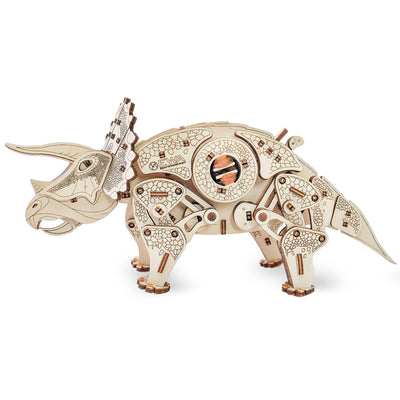Terwijl we daarop wachten, kunnen we de tijd overbruggen met de Eco-Wood-Art-Houten Modelbouwset 'Triceratops': Deze bouwset bevat laser gesneden houten onderdelen, waarmee je een gedetailleerd model van een Triceratops kunt bouwen. En het beste? De dino kan zelfs lopen! Zodra je de ingebouwde elastiekmotor hebt opgewonden, begint de Triceratops vrolijk rond te stappen!
