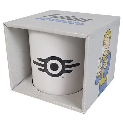 Überall kann ein Wanderer in den Ruinen des post-nuklearen Amerikas auf mehr oder weniger erhaltenes Merchandise treffen. Ein großartiges und noch immer gut erhaltenes Exemplar ist dieser strahlend weiße Keramikbecher mit dem Logo des außergewöhnlichen Arbeitgebers. Er hält ca. 330 ml - gerade genug für einen anständigen Morgenkaffee, aber ohne Gefahr zu laufen, die zugestandenen 2.25 Minuten Toilettenpause überzustrapazieren. Zudem ist der Becher geeignet für Spülmaschine, Mikrowelle und Mister Handy!