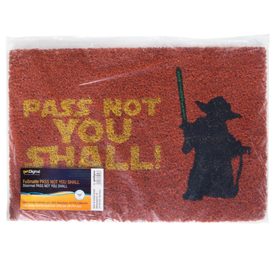 Wat zou beter helpen om ongewenste bezoekers buiten te houden dan een deurmat die de kracht van Gandalf de Grijze en Jedi-Meester Yoda verenigt? Wat stormtroopers kan verwarren en de Balrog van Khazad-dûm kan tegenhouden, zal zeker ook helpen tegen je schoonmoeder of ongewenste verzekeringsagenten. Het beste leg je zo snel mogelijk onze Pass not you shall deurmat voor je deur.