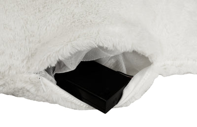 De elektronica van het LED Kussen en de energiezuinige LEDs bevinden zich in de kussenvulling, het batterijpakket zit extra in een klein gewatteerd zakje, zodat er niets stoort of drukt.