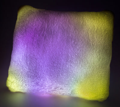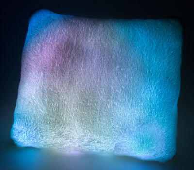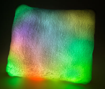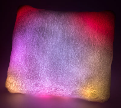 • Extra-pluche kussen met wisselende veelkleurige LED-verlichting.