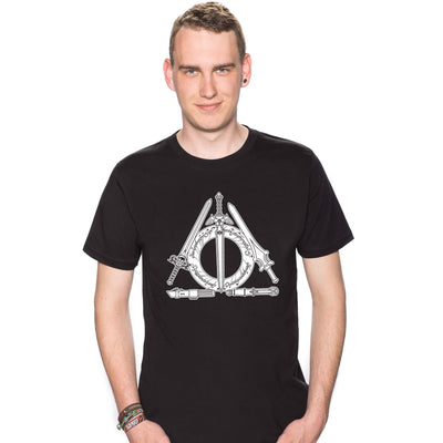 Handig genoeg hebben we een soort geheime code ontwikkeld die je daarbij kan helpen. Als je het Zwaarden des Doods shirt in het openbaar draagt en erop wordt aangesproken, weet je al snel meer over de persoon tegenover je: Wie meer dan drie van de symbolen herkent, is een echte nerd. Wie alle zeven kan opnoemen, is minstens net zo gek als jij!