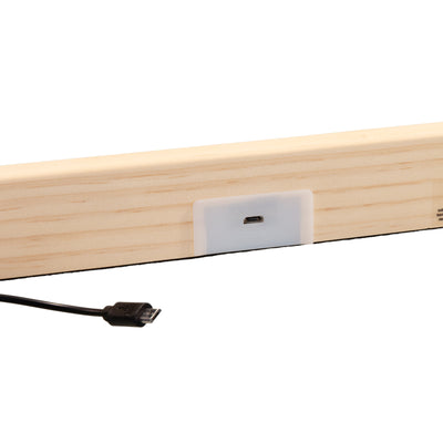 La fuente de alimentación es convenientemente a través del adjunto Micro USB-Cable. Ahora todo lo que tienes que hacer es pensar en qué palabra con hasta siete letras quieres poner ...;)